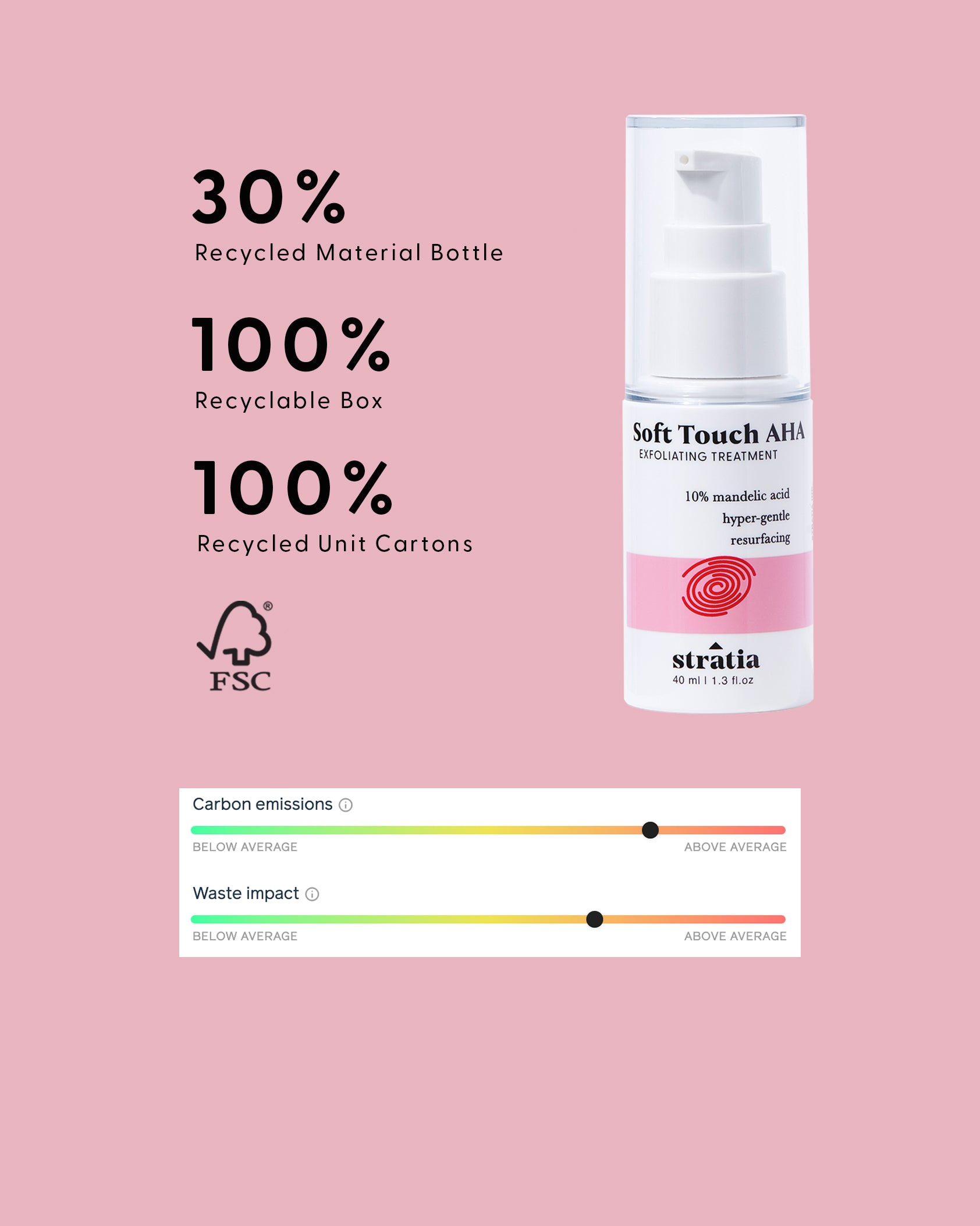 Soft Touch AHA is now 40ml instead of 50ml - customer feedback told us that it was difficult to use up the full 50ml before it expired