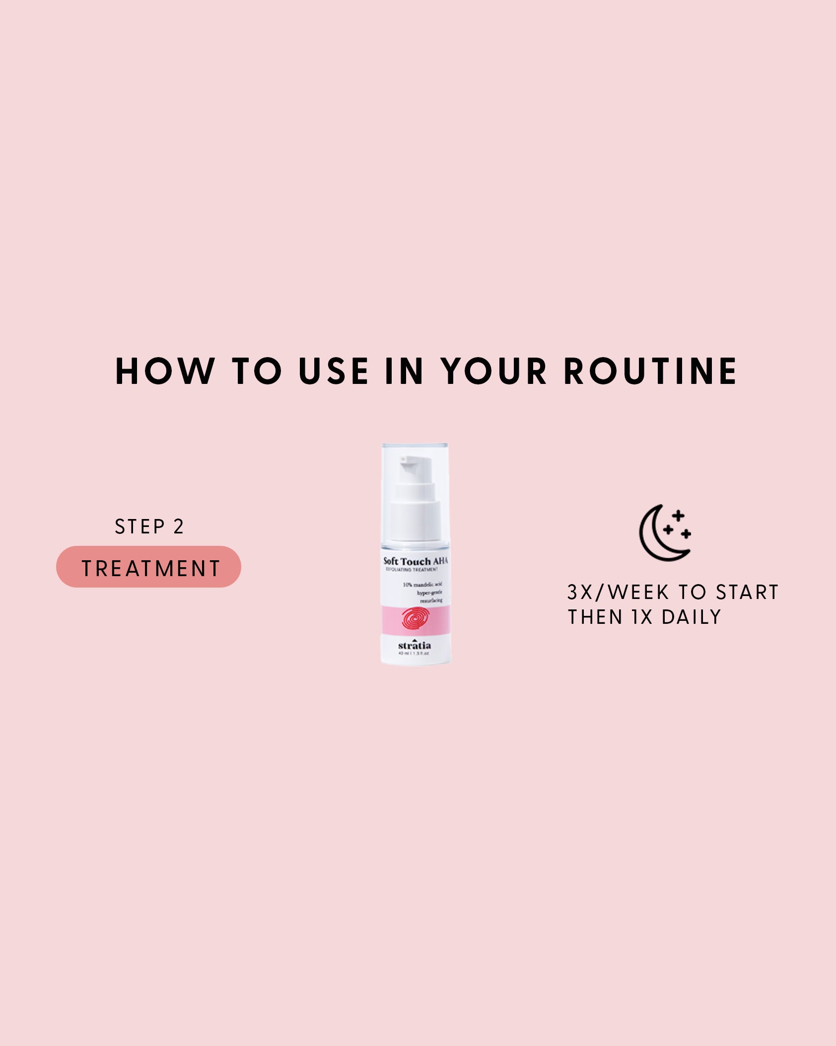We suggest using Soft Touch in your evening routine to allow time for absorption, however you’re more than welcome to use it in your morning routine. Either way we highly suggest applying and reapplying sunscreen daily as mandelic acid can be photosensitizing.