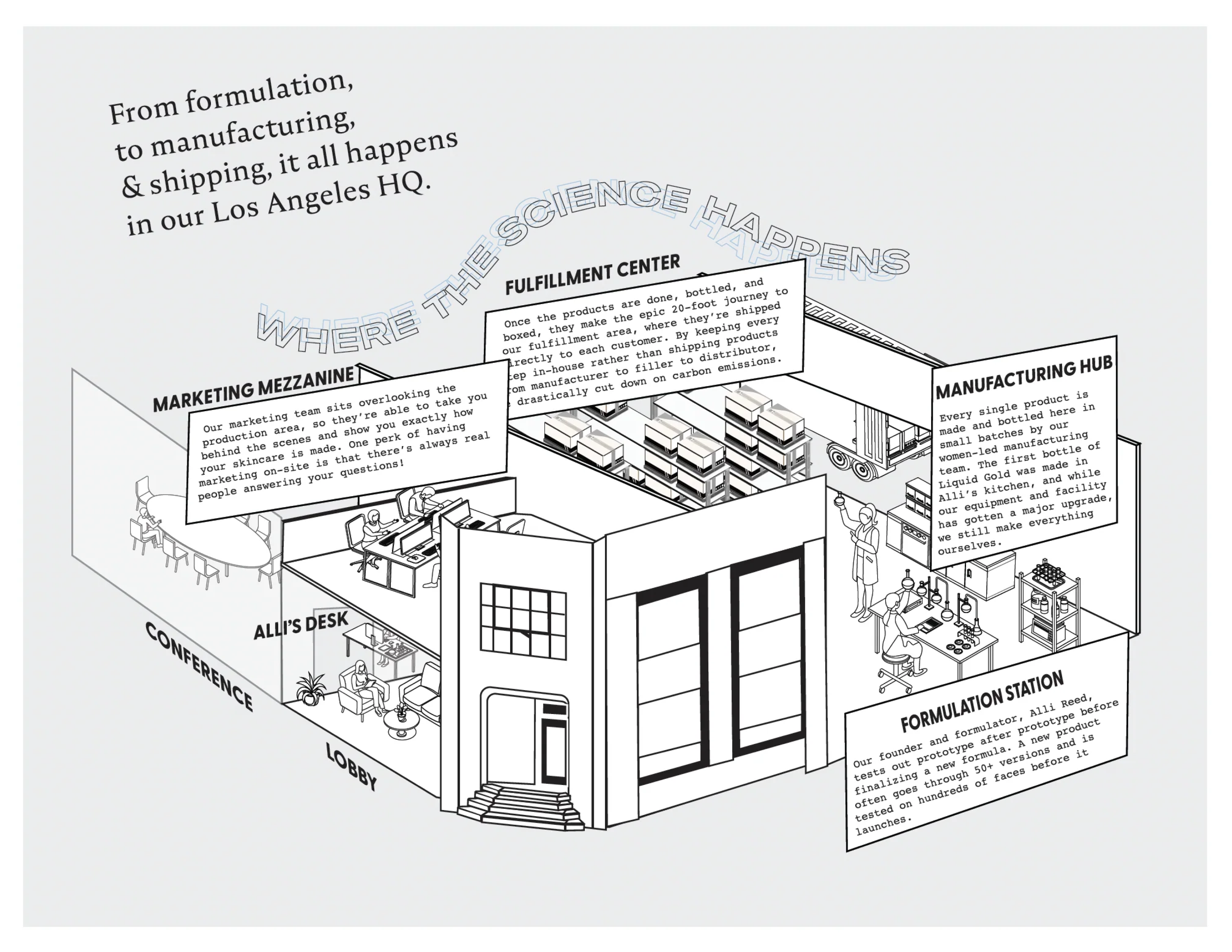 Stratia Lab + HQ is where all the science happens, from formulation to hand-bottling to your doorstep. No middlemen invited to cut down on transportation-related emissions.