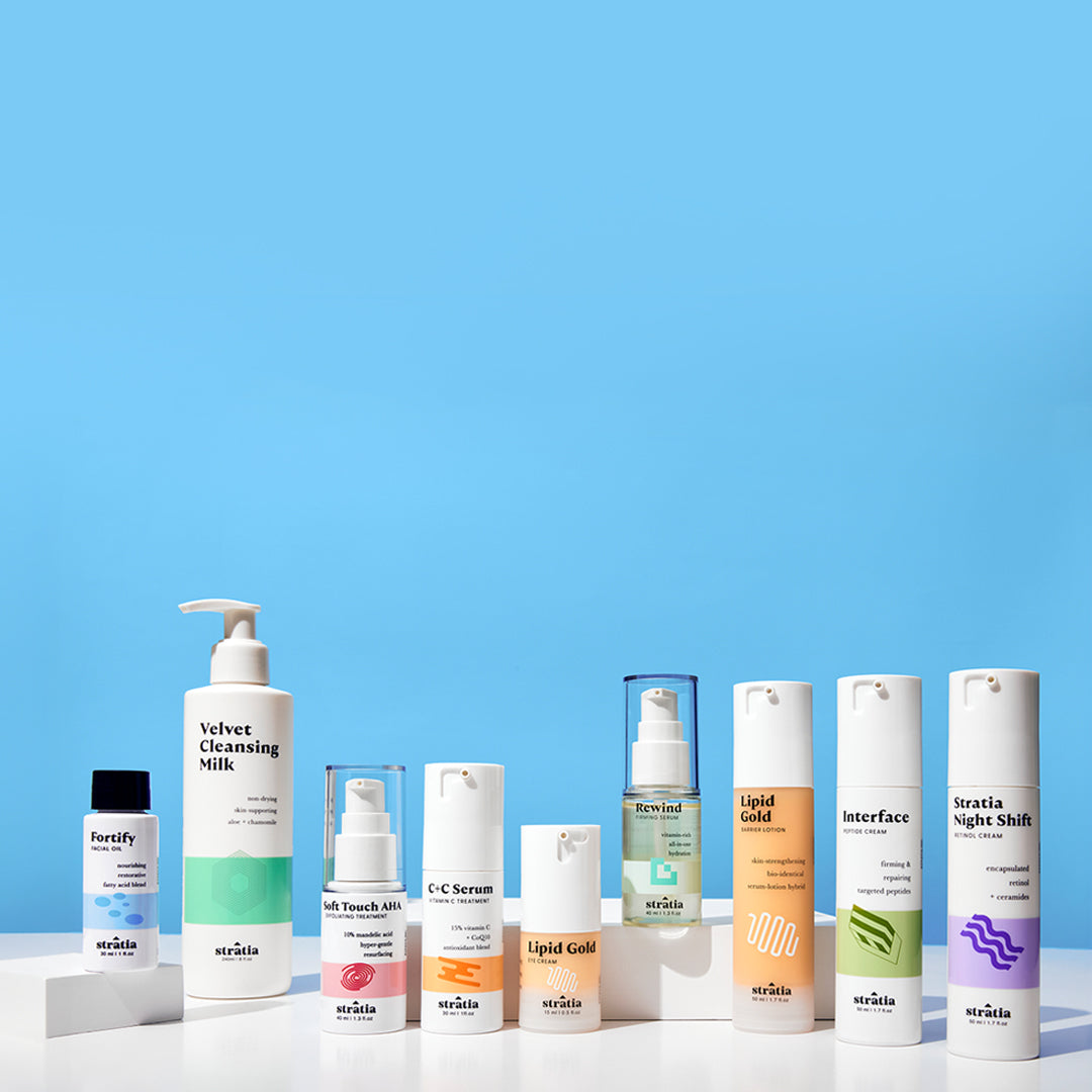 All Stratia products are free of common irritants like fragrance, alcohol, and essential oils.